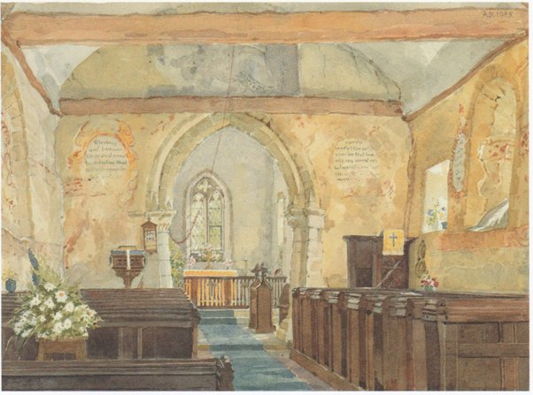 Black and white copies of the sixteen paintings made by Clive Rouse are on display in the church. The original paintings are in the care of The Society of Antiquaries of London, Burlington House, Piccadilly, London W1J 0BE
