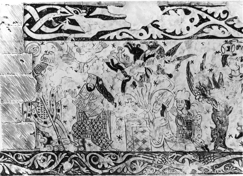 The background, here and elsewhere, is dotted with crude stars, and are part of the 12thcentury decoration.
