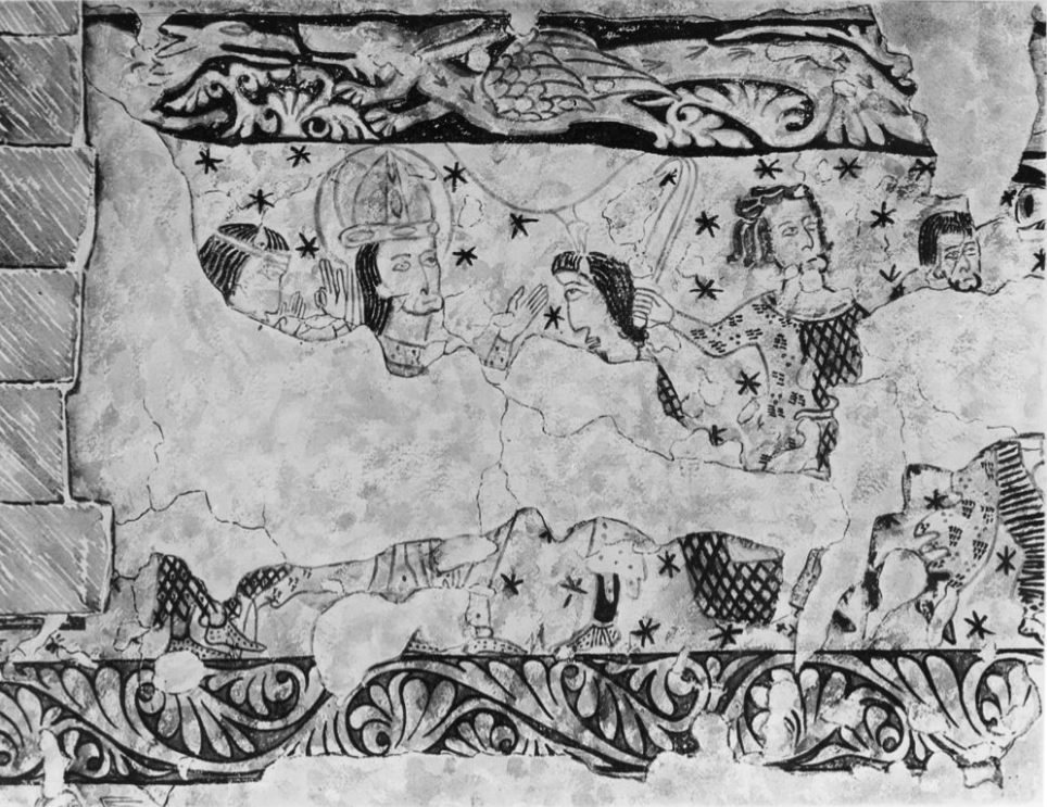 1. There are no fewer than five successive schemes of painting in the church. (Five is a conservative estimate.) The first representing the Life of St. James is dated between 1190 -1220.